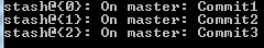 Now when you do git stash list you can see all the commits ready for moving to the branch, and Tortoise shows master at origin/HEAD so you know that all changes were removed.